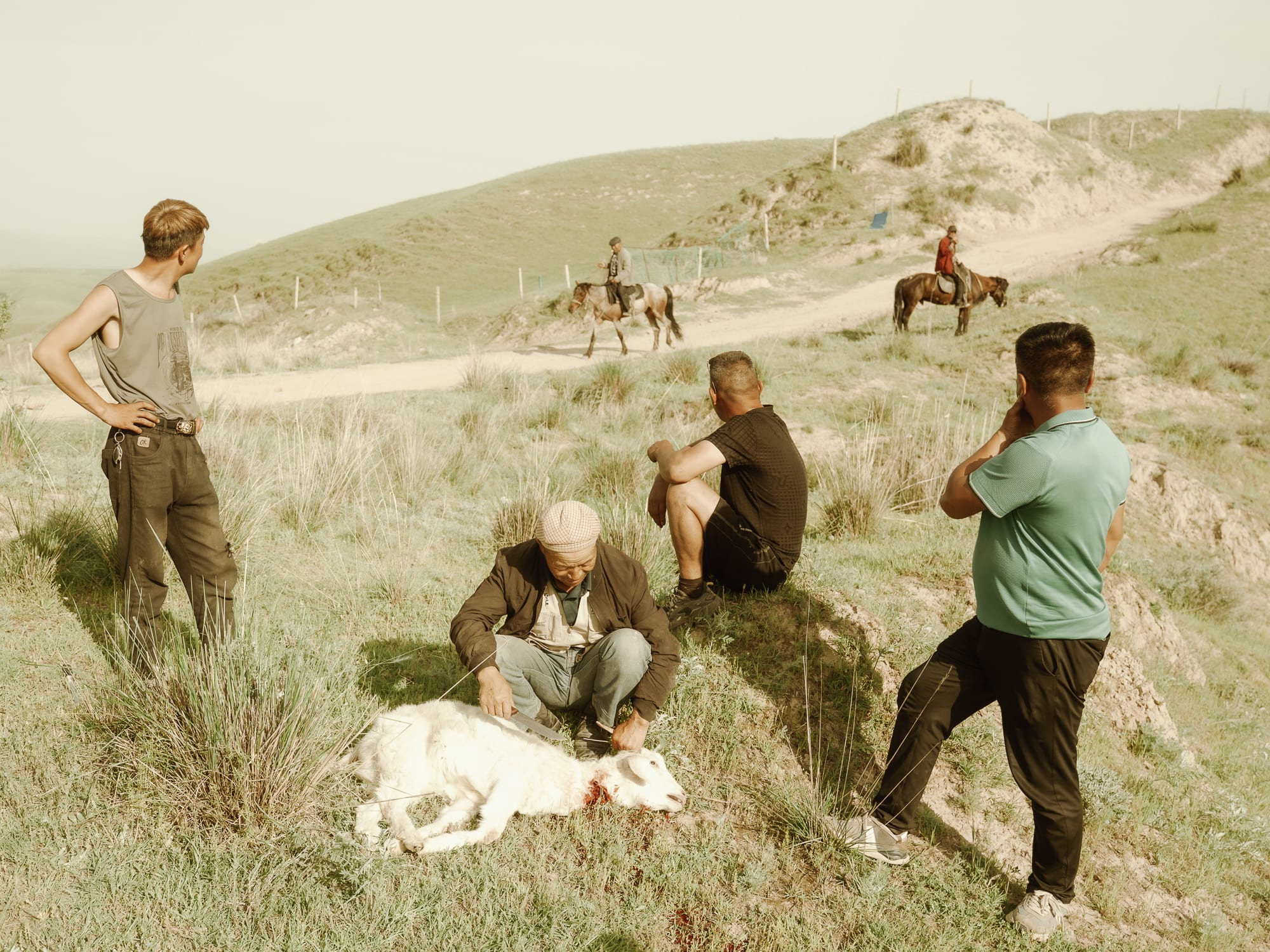 本项目完成于我在新疆伊犁地区为期三个月(4—7月)的驻留期间。作品以摄影记录草原环境中人与自然之间持续而具体的互动关系。季节更替、地貌与日常劳动共同塑造着当地的生活节律,村民在依赖自然资源的同时,不断调整自身的位置与行动。本组影像关注这种依存、适应与协商并存的状态,呈现一种真实而未被理想化的共存关系。 This project was produced during a three-month residency (April–July) in the Ili region of Xinjiang. Through photography, it documents the ongoing and tangible interactions between people and the grassland environment. Seasonal change, landscape, and daily labor shape the rhythm of life, while villagers continuously adjust their position and actions in relation to natural resources. The series focuses on this state of dependence, adaptation, and negotiation, presenting a form of coexistence grounded in lived reality rather than idealization.